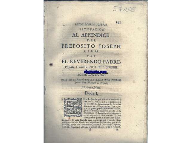Ilmo, y Rmo Señor. No se à que impulso, y causa ha salido, Señor, un papel, impugnando una sentencia passada en cosa juzgada, hecha por el Canonigo Romaguera Vicario General de V. Illustrissima à los 13. de Agosto de 1701. entre Iuan Ulldemolins Presbitero, como à Procurador de la Hermana Sor Maria de San mathias, llamada en el mundo Maria Villafranca, de parte una, y los ASdministradores de la causa pia de Olivella de otra; en virtud de la qual la parte contraria pagò, y assimismo lo han continuado algunos, como se dixo en la suplica de los ultimos de mayo...