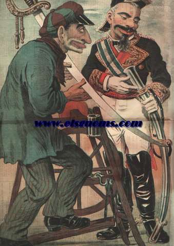 385 x 275mm. 4pp.Portada ilustrada.Lámina doble: Los benévolos, arrimándose al sol que hoy más calienta. Madrid, Imprenta de M. Romero, 1882. Destacar las láminas que son del artista Demócrito (seudónimo de Eduardo Sojo). |