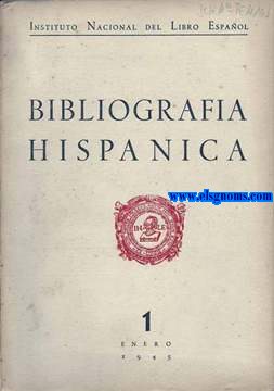 Bibliografía Hispánica.Repertorio Bibliográfico clasificado por materias.Instiuto Nacional del Libro Español. Mayo1946.