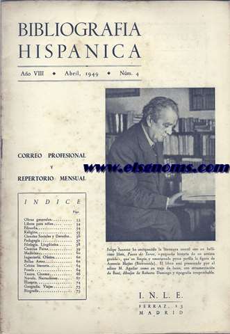 Bibliografía Hispánica..Instiuto Nacional del Libro Español.Mayo 1949. Correo profesional, Correo literario, Guía del lector y Repertorio mensual.
