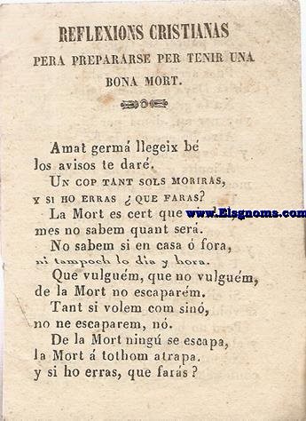 4º. VIII-84pp. Barcelona, Juan nadal Impressor, (1782). Contiene curiosas noticias sobre el origen y descripciones la basílica de Santa María del Mar y de las calles y fiestas que allí se celebraron. Incluye igualmente varias coplas y poesías: En la Capilla del Señor Jayme Masadas en la Calle Platería, en la Plaza del Ángel, en la Plaza de la Lana, en la capilla de Marcús, en la capilla de la Calle de Moncada, en la Plazuela de los Sombrereros, calle de la Vidrieria, de la Esparteria, en la Esquina de detrás Palacio, de la Capilla de debaxo, ò junto al Puente de Palacio, de la Calle de los Cambios, en la Tienda del Sr. Creus, Calle de los Cambios,etc. Muchas de ellas en llengua catalana. |