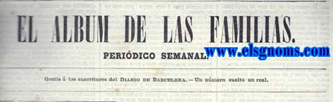 1 .   El Album de las Familias. Periódico semanal. Gratis á los suscriptores del Diario de Barcelona. Nº12. Tomo II. Barcelona, 29 de enero de 1860.