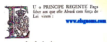 Eu o Principe Regente: Alvará , porque Vossa Alteza Real Ha por bem , que o Hilho Recem - nascido da Princeza Dona Maria Thereza , sua Muito Amada e Prezada Filha , e do Infante de Hespanha Dom Pedro Carlos , seu Muito Amado e Prezado Sobrinho , goze nestes Reinos , Estados , e Dominios do Titulo , e Tratamento de Infante , e de todas as Honras , Preeminencias , e Precedencias , que como tal lhe são devidas , assim e da mesma sorte , que nelles goza o mesmo Infante seu Pai ; na fórma acima declarada.