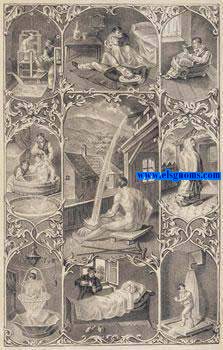 Folio menor. VI-143-Ipp. Paris, A.Quantin, 1882. Tela con frontis de seda. Lujosa edición en papel de hilo, ilustrada con numerosas y primorosas ilustraciones grabadas en distintos colores y viñetas en todas las páginas. |